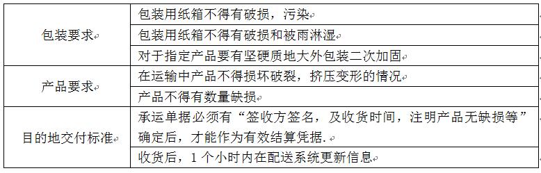 注:配送過程中發(fā)生的貨損, 承運商必須按照產(chǎn)品招商價全額賠償。